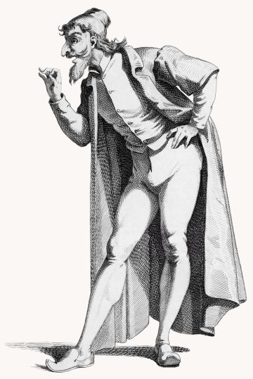 Now starting to look at the 'master' characters, we first have Il Dottore, or 'the doctor'. Dottore is a highly educated character but not intelligent. He is also obscenely rich which leads to him having a pompous nature; but subsequently he is then a comic foil to Pantelone acting either as an advisor, friend or competitor; with Pantalone being the decadent wealthy merchant, and Il Dottore being the decadent academic.